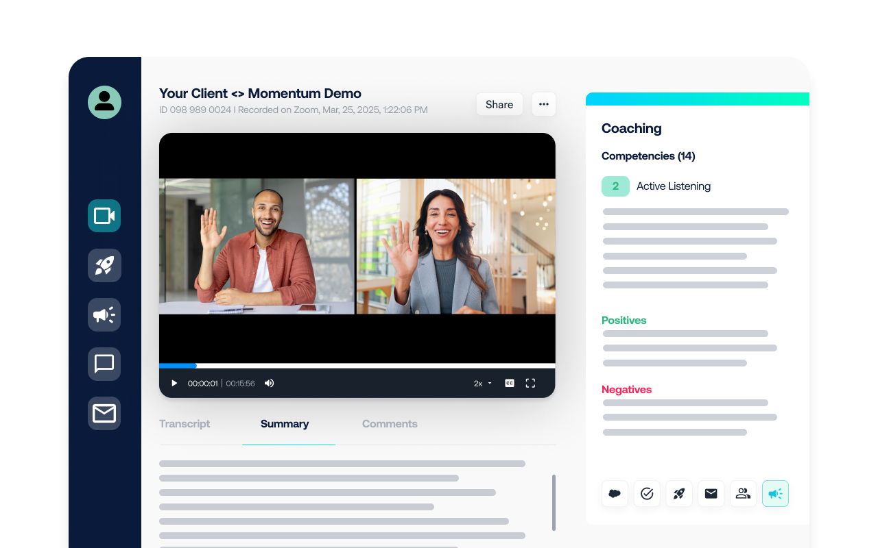 Momentum’s AI Sales Coaching Agent comes across like the coach every revenue team wishes they had: real-time feedback that actually lands, clear competency insights that make progress visible, and video-based reinforcement that sticks.