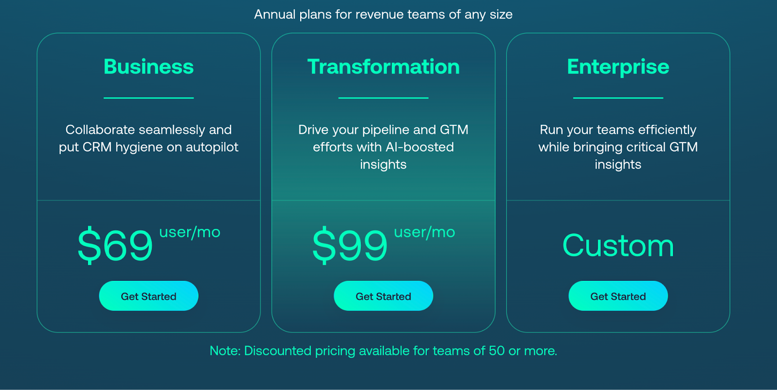 - Transformation — $99 per user/month