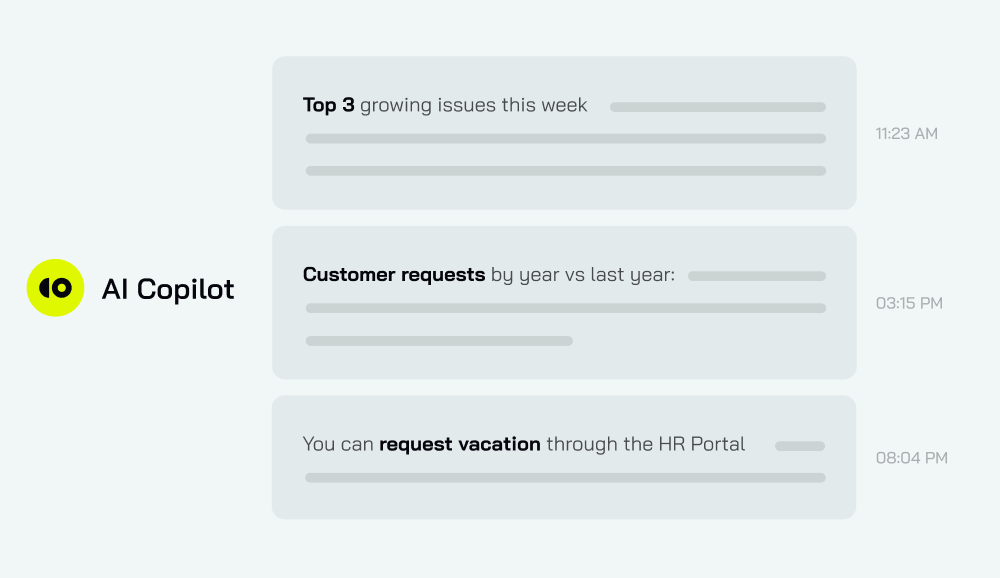 - AI Business Intelligence that analyzes customer feedback and extracts insights from all support interactions.